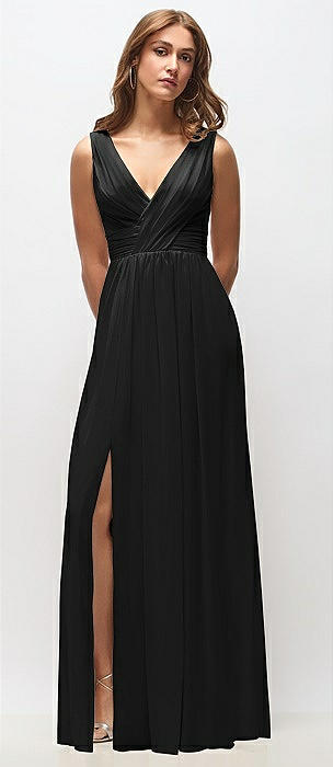 Sleeveless Draped Chiffon Maxi Dress with Front Slit in black