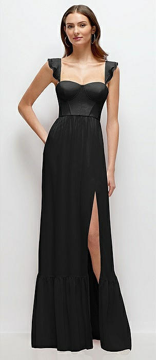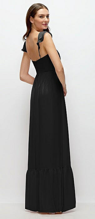 Ruffle Strap Chiffon Bustier Maxi Dress with Ruffle Hem A-Line Skirt in black