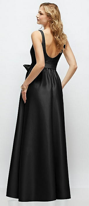 Square-Neck Satin Maxi Dress with Full Skirt in black
