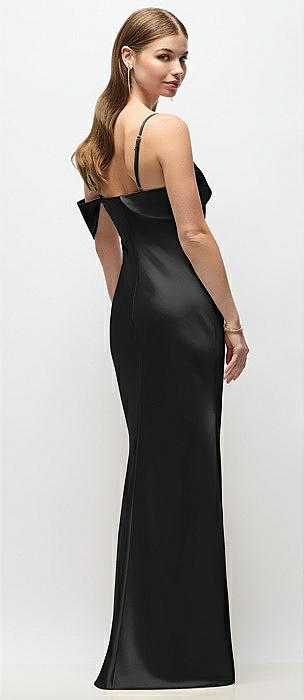 Soft Cowl Neck Ruched Side Satin Bias Maxi Dress with Shoulder Bows in black