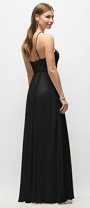 High-Neck Halter Chiffon Maxi Dress with Adjustable Spaghetti Straps in black
