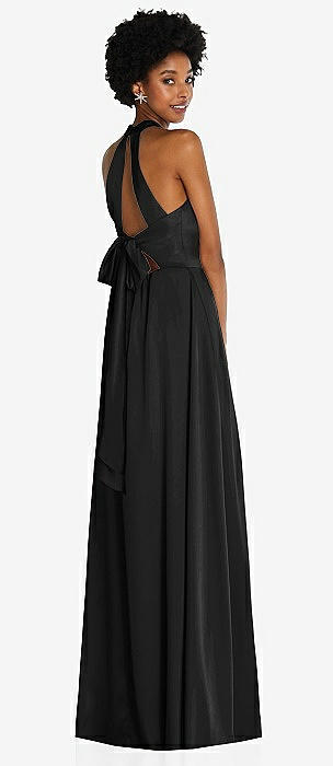 Stand Collar Cutout Tie Back Maxi Dress with Front Slit in black