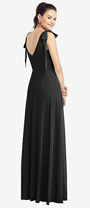 Bow-Shoulder V-Back Chiffon Gown with Front Slit in black
