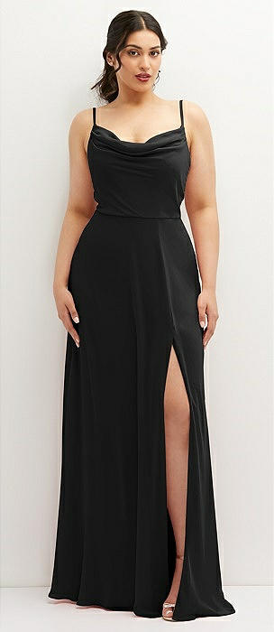 Soft Cowl-Neck A-Line Maxi Dress with Adjustable Straps