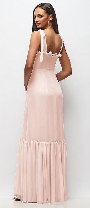 Tie-Shoulder Chiffon Maxi Dress with Front Slit in blush