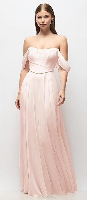 Off-the-Shoulder Basque Corset Chiffon Maxi Dress in blush