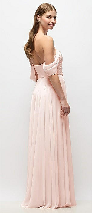 Off-the-Shoulder Crepe Column Maxi Dress with Bow-Pinch Detail in blush