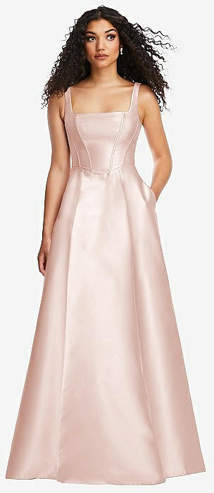 Sleeveless Square-Neck Princess Line Gown with Pockets in blush