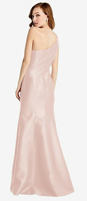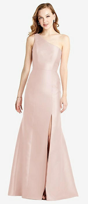 One-Shoulder Crepe Trumpet Gown with Front Slit in blush