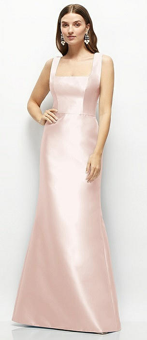 Satin Fit and Flare Maxi Dress with Shoulder Bows in blush