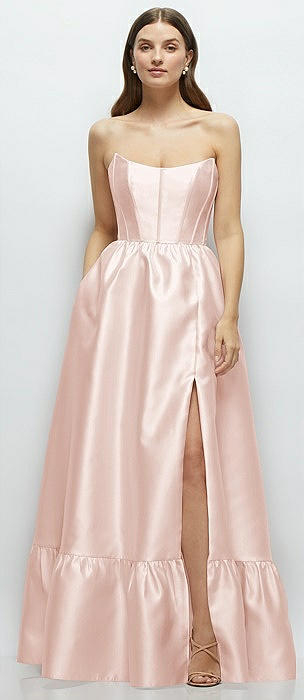 Strapless Cat-Eye Boned Bodice Maxi Dress with Ruffle Hem in blush