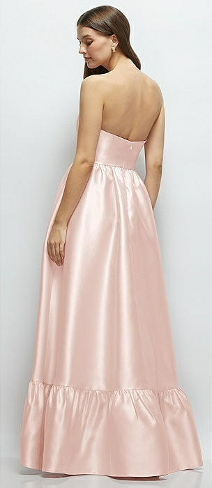 Strapless A-line Satin Gown with Modern Bow Detail in blush