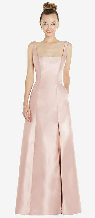 Sleeveless Square-Neck Princess Line Gown with Pockets in blush