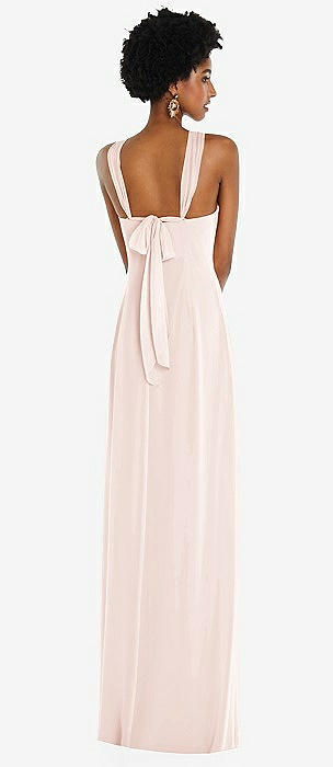 Sleeveless Satin Trumpet Gown with Bow at Open-Back in blush