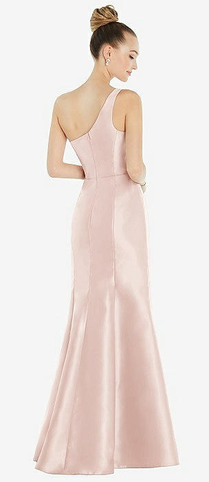 Draped One-Shoulder Satin Trumpet Gown with Front Slit in blush