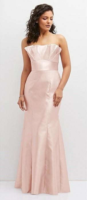 Strapless Notch Satin Gown with Pockets in blush