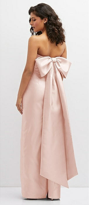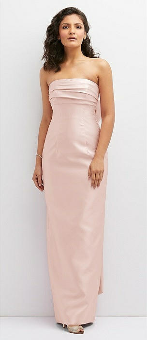 Strapless Draped Bodice Column Dress with Oversized Bow in blush