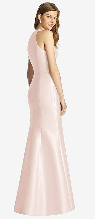 Sleeveless Satin Trumpet Gown with Bow at Open-Back in blush