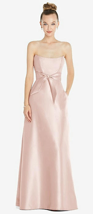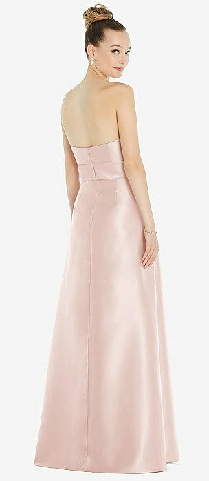 Strapless Satin Gown with Draped Front Slit and Pockets in blush