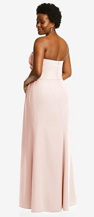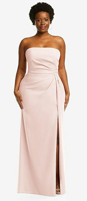 Strapless Pleated Faux Wrap Trumpet Gown with Front Slit in blush