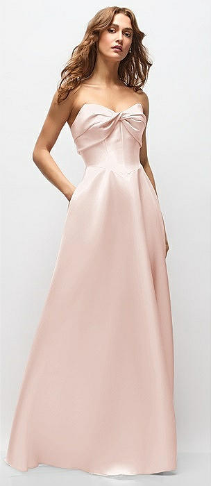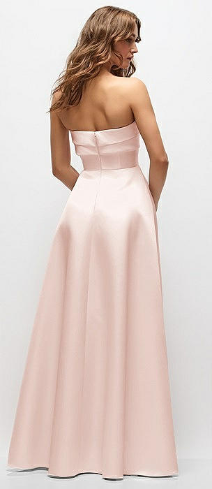 Strapless Bias Cuff Bodice Satin Gown with Pockets in blush