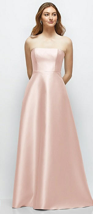 Strapless Bias Cuff Bodice Satin Gown with Pockets in blush