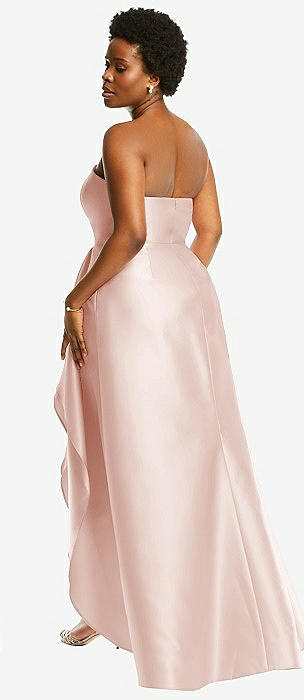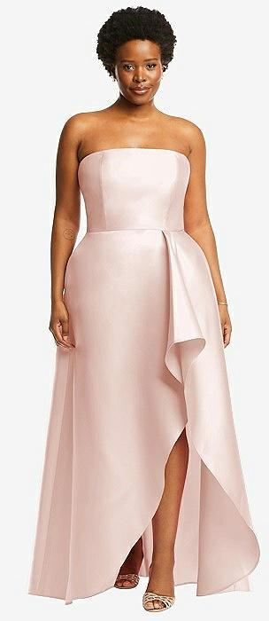 Strapless Deep Ruffle Hem Satin High Low Dress with Pockets in blush