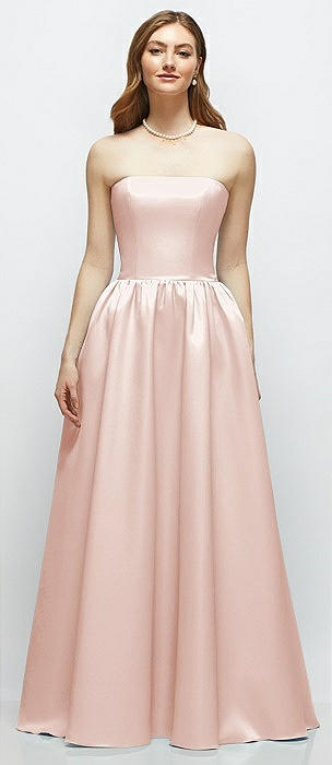 Strapless Satin Drop Waist Gown with Full Skirt in blush