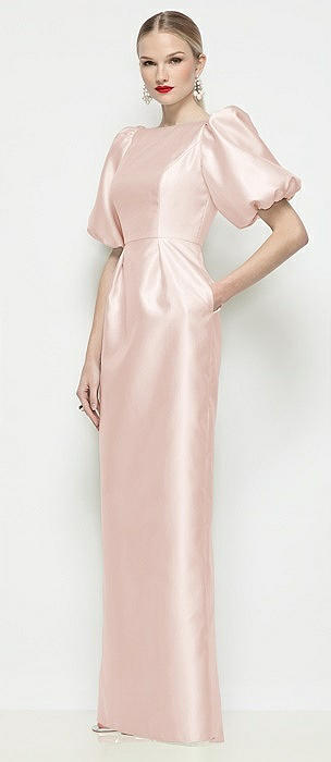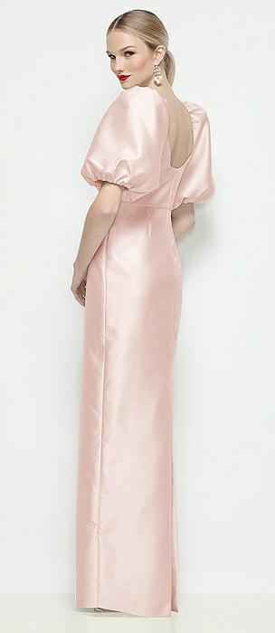 Bateau Neck Satin Column Maxi Dress with Puff Sleeves in blush