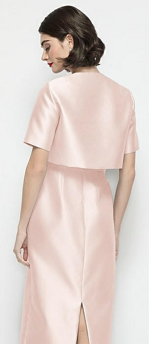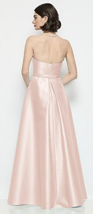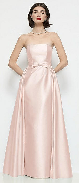 Strapless Bow-Waist Satin Column Dress with Overskirt in blush