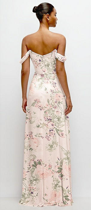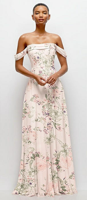 Off-the-Shoulder Draped Neckline Maxi Dress in blush garden