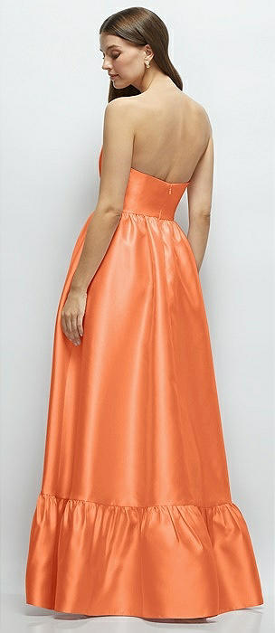 Strapless Cat-Eye Boned Bodice Maxi Dress with Ruffle Hem in portofino orange