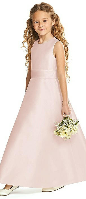 Spaghetti Strap Satin Junior Bridesmaid Dress with Mini Sash in blush