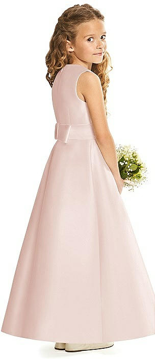 Faux Wrap Pleated Skirt Satin Twill Flower Girl Dress with Bow in blush