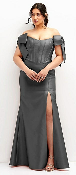 Bateau Neck Satin Column Maxi Dress with Exaggerated Tail Bow Straps in black