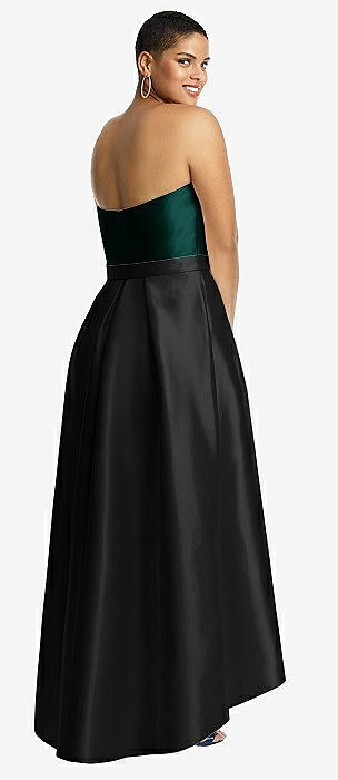 Strapless Deep Ruffle Hem Satin High Low Dress with Pockets in black
