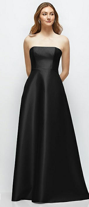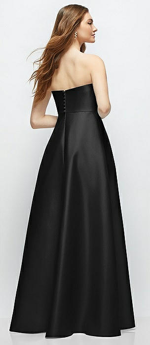 Strapless Notch Satin Gown with Pockets in black