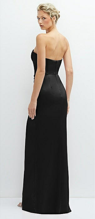 Strapless Satin Gown with Draped Front Slit and Pockets in black