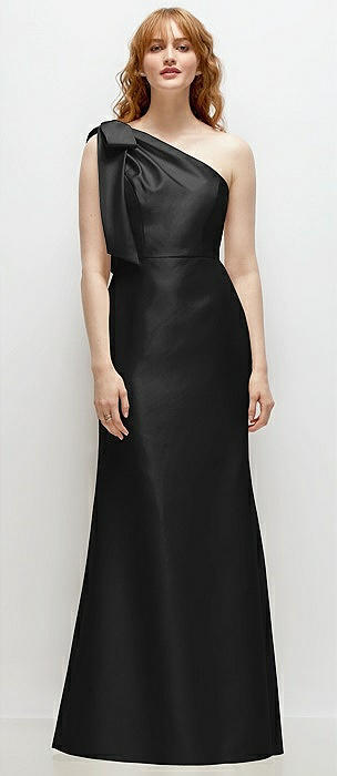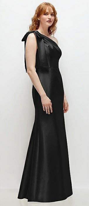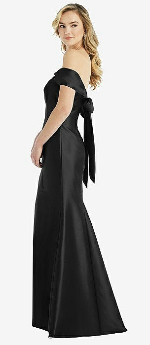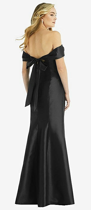Off-the-Shoulder Bow-Back Satin Trumpet Gown in black