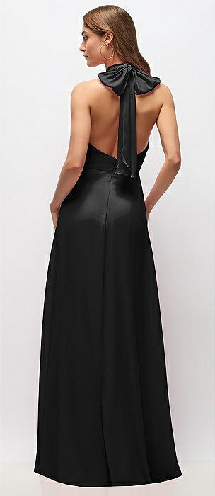 Sleeveless Satin Trumpet Gown with Bow at Open-Back in black