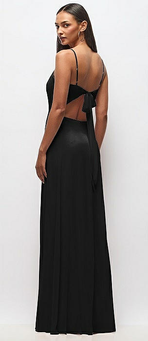 Tie-Back Cutout Trumpet Gown with Front Slit in black