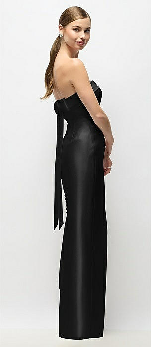 Strapless Cuff Satin Maxi Dress with Column Skirt & Back Bow in black