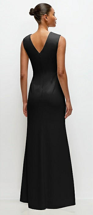 Sleeveless Cap Shoulder Crepe Maxi Dress with Trumpet Skirt in black
