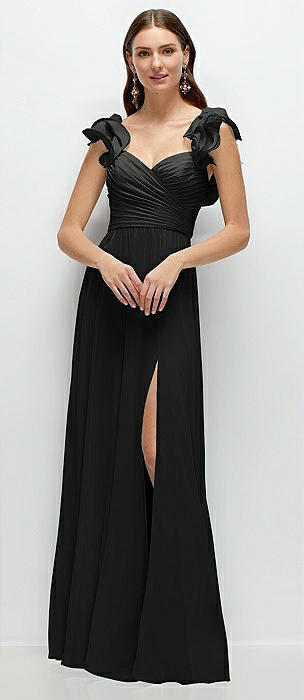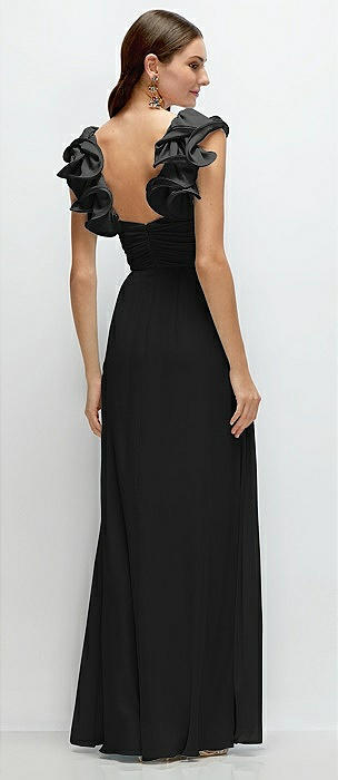 Dramatic Ruffle Edge Strap Chiffon Maxi Dress in black