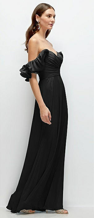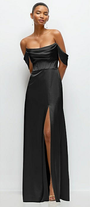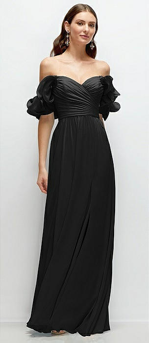 Black After Six Off-The-Shoulder Bridesmaid Dresses