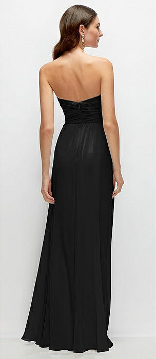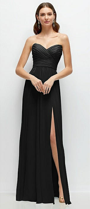 Strapless Pleated Surplice Chiffon Maxi Dress with A-Line Skirt in black