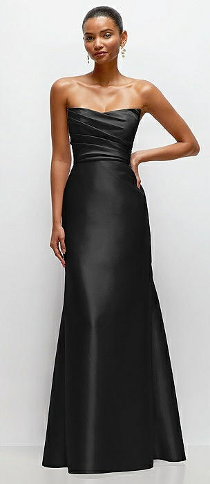 Strapless Cat-Eye Draped Bodice Satin Tumpet Dress in black