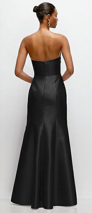 Strapless Satin Column Dress with Back Slit in black