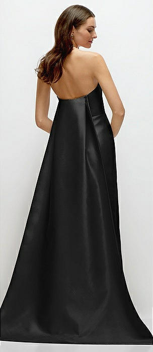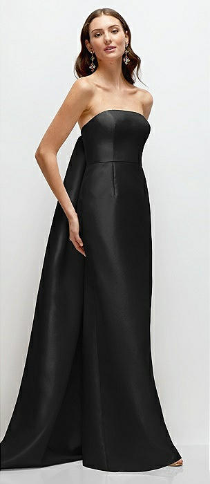Strapless Satin Column Dress with Removeable Watteau Train in black