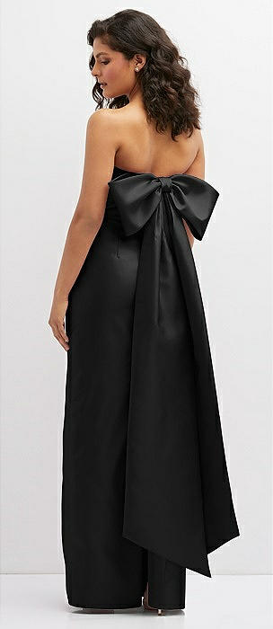 Strapless A-line Satin Gown with Modern Bow Detail in black